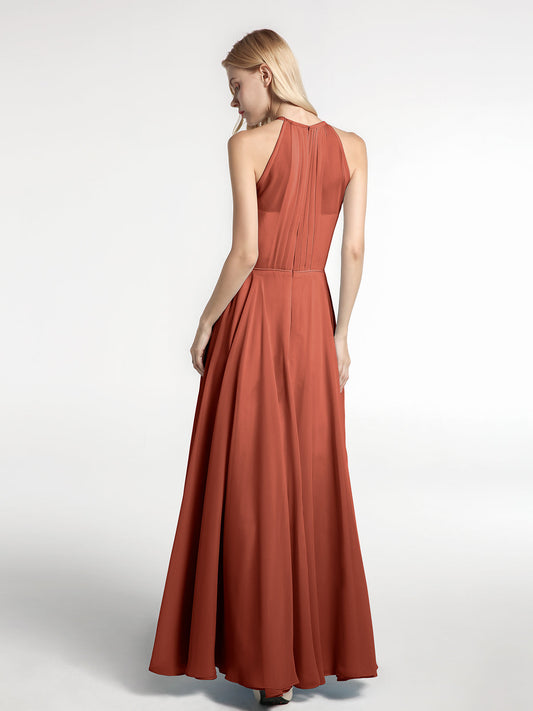 Babaroni AmyVestidos largos de dama de honor de chiffon con tirantes de cuello halter Óxido