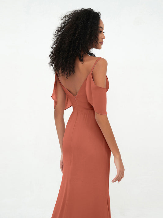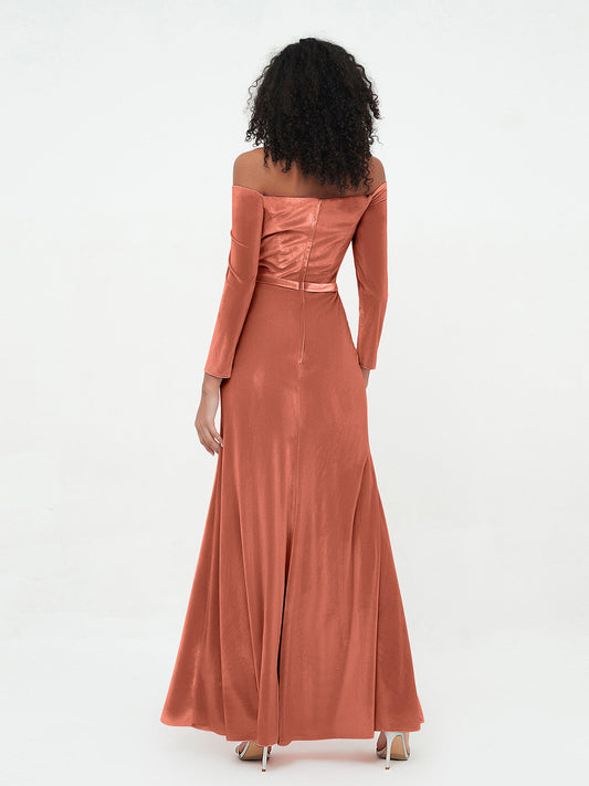 Babaroni BridgetVestidos largos de terciopelo con hombros descubiertos y mangas largas Óxido