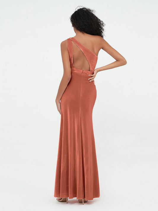 Babaroni DawnVestidos de terciopelo de un hombro con espalda abierta y abertura Óxido