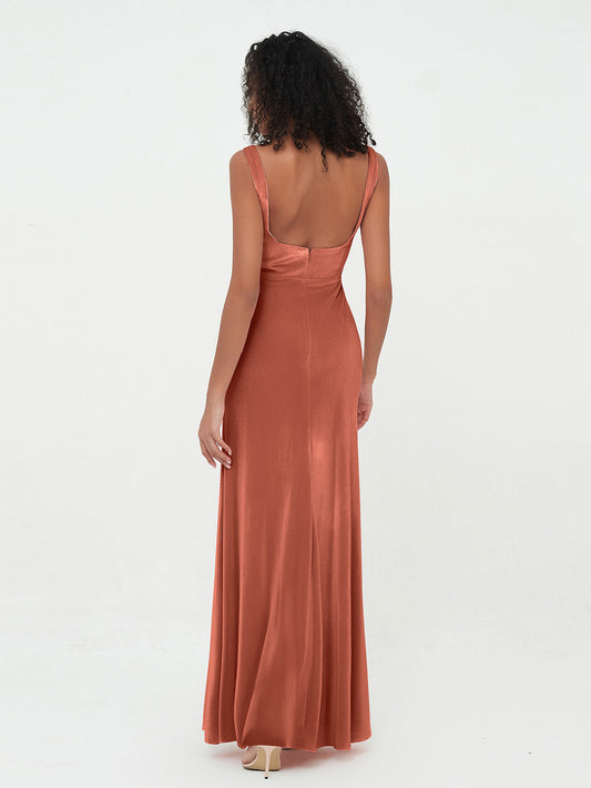 Babaroni EsmeVestidos largos de terciopelo estilo sirena con cuello barco Óxido