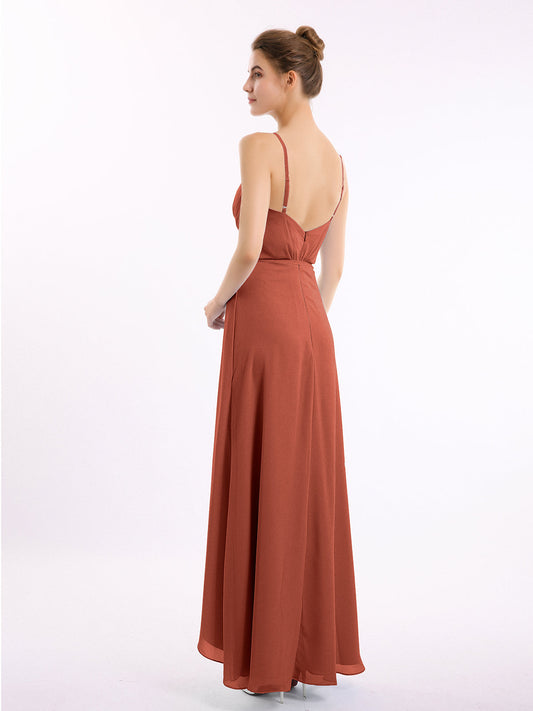 Babaroni OliveVestidos de chiffon con tirantes finos y largo asimétrico con lazo Óxido