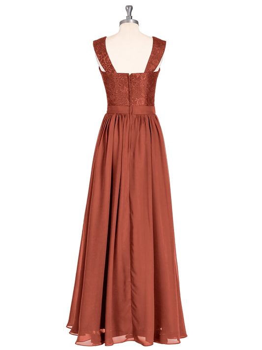 Babaroni VivienVivien Hombro Tirante Encaje Y Gasa Largo Vestido Óxido