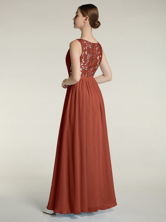 Babaroni MariaVestidos largos de chiffon de cuello en Y para damas de honor Óxido