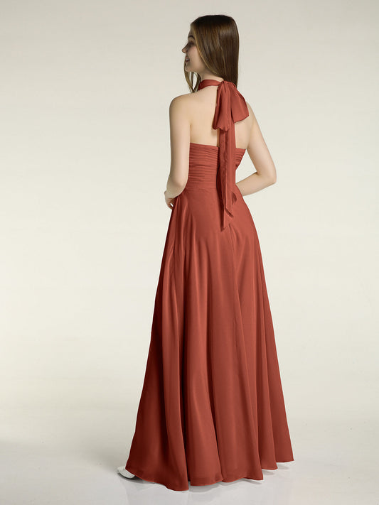 Babaroni JaneVestidos largos de chiffon estilo halter con lazo Óxido