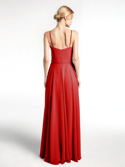 Babaroni EllaVestido sencillo de chiffon con tirantes finos y escote en forma de muesca Rojo