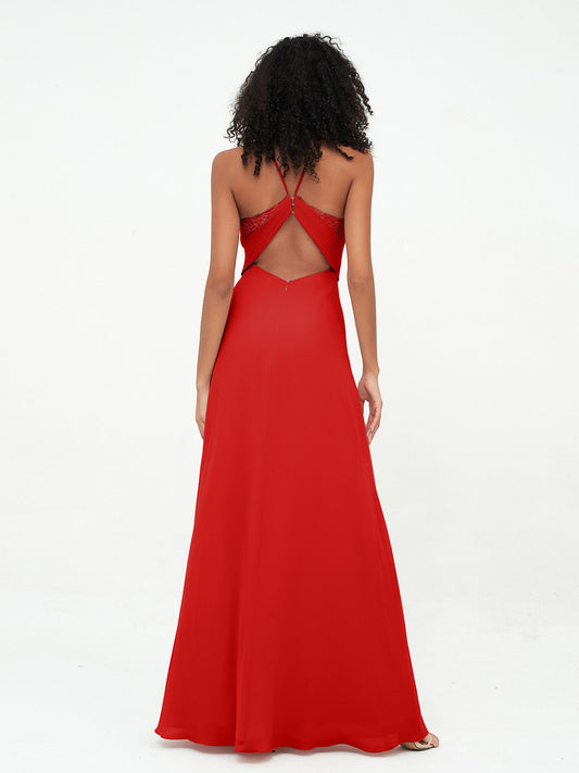Babaroni FrancesVestidos de halter con top de encaje y espalda descubierta de gasa Rojo