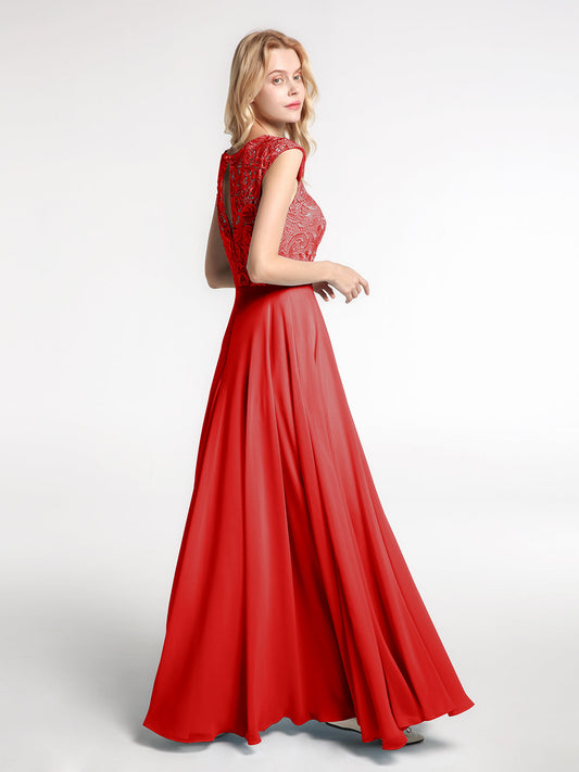 Babaroni PearlPearl Largos Vestidos De Dama De Honor Con Mangas De La Tapa Rojo