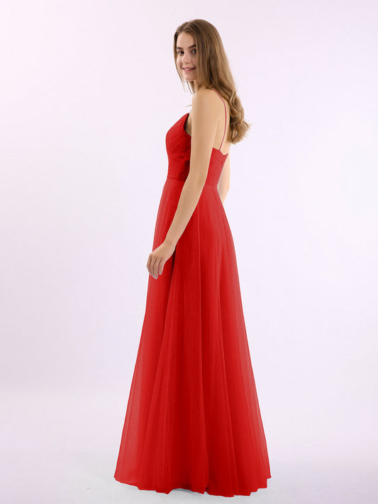 Babaroni MarjorieVestidos largos de tul plisado con tirantes spaghetti Rojo
