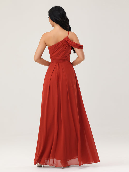 Babaroni PrudencePrudence Un Hombro Gasa Largo Cortes De Dama De Honor Rojo