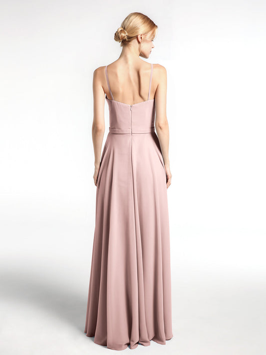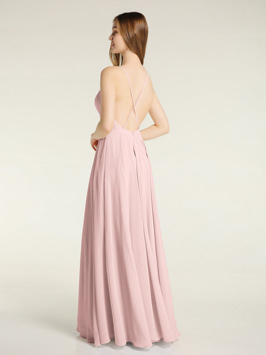 Babaroni EllaVestido sencillo de chiffon con tirantes finos y escote en forma de muesca Rosa Polvoriento