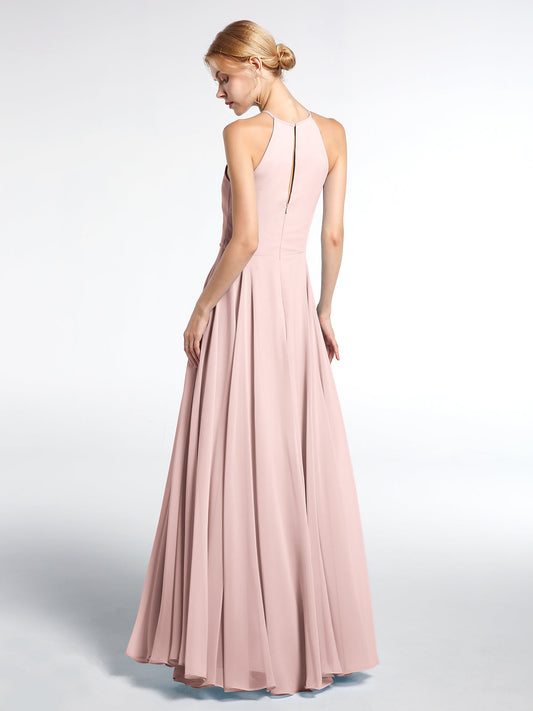 Babaroni SandraVestidos sencillos de dama de honor de chiffon con espalda baja Rosa Polvoriento