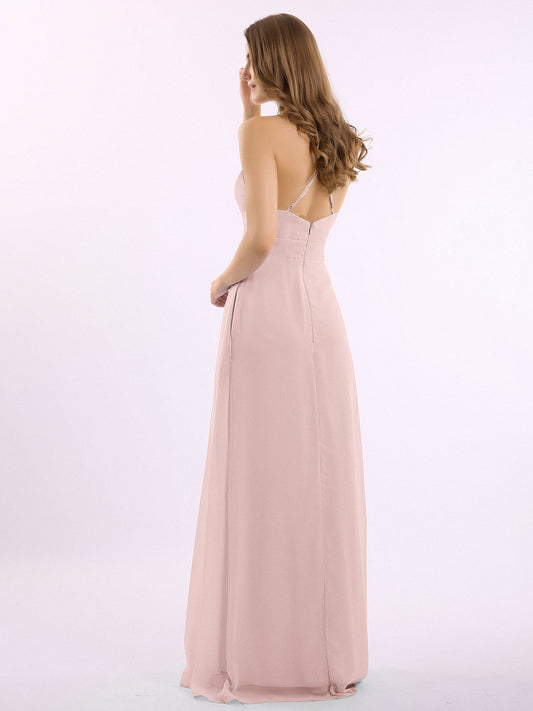 Babaroni CoraVestido largo de dama de honor de chiffon con tirantes dobles Rosa Polvoriento