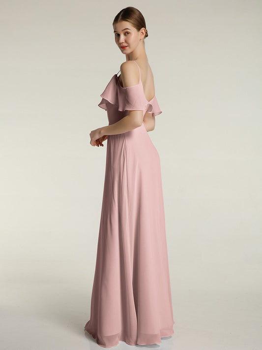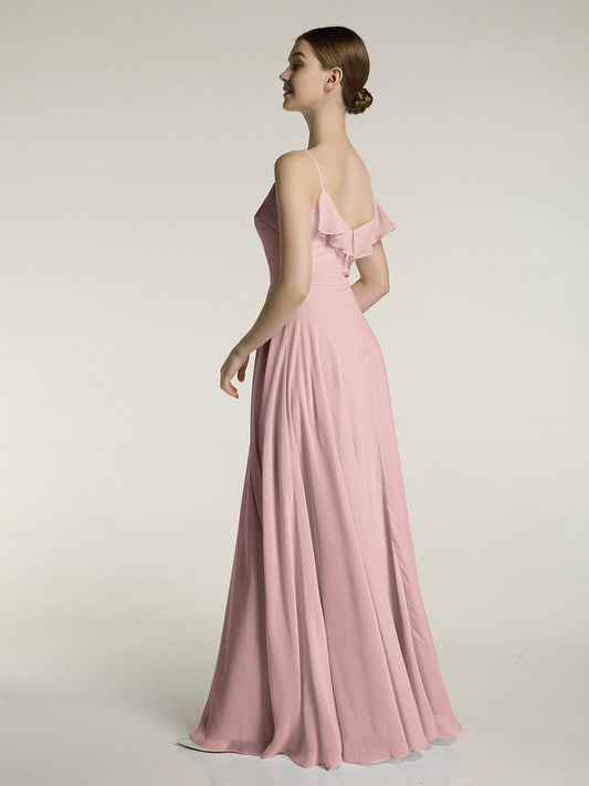 Babaroni JuliaVestidos largos de chiffon con tirantes finos y escote en V Rosa Polvoriento