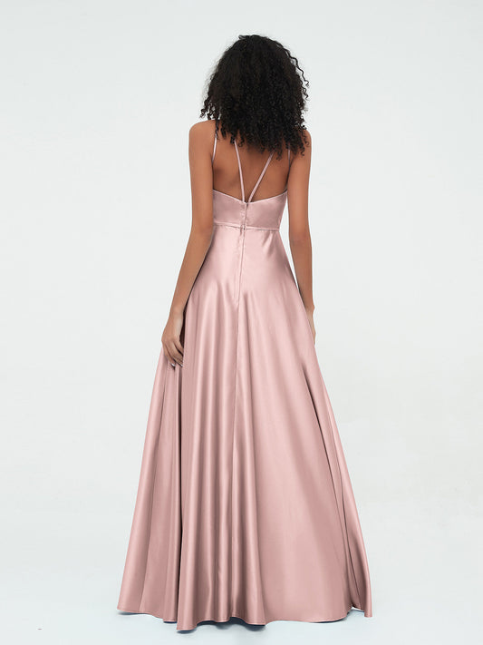 Babaroni MyrnaVestidos máximos de satén estilo A-line con tirantes spaghetti Rosa Polvoriento