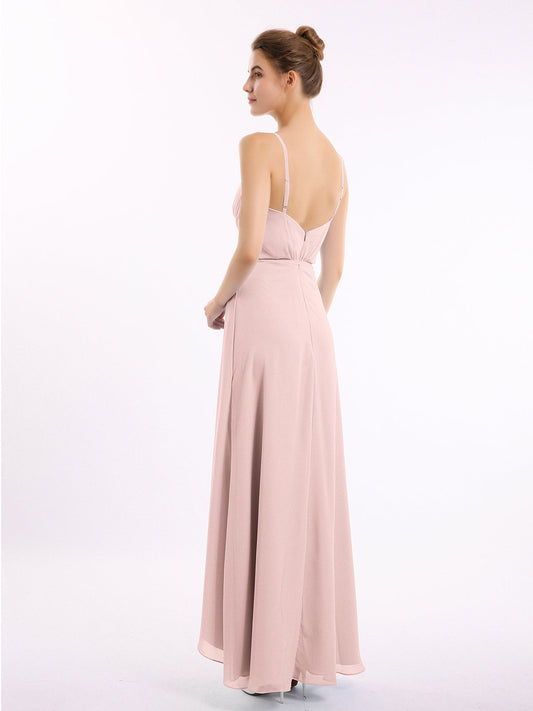 Babaroni OliveVestidos de chiffon con tirantes finos y largo asimétrico con lazo Rosa Polvoriento