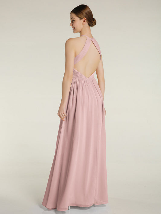 Babaroni TheraVestidos largos de dama de honor estilo halter de chiffon con espalda baja Rosa Polvoriento