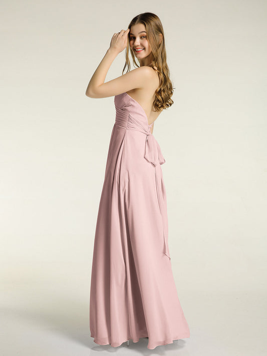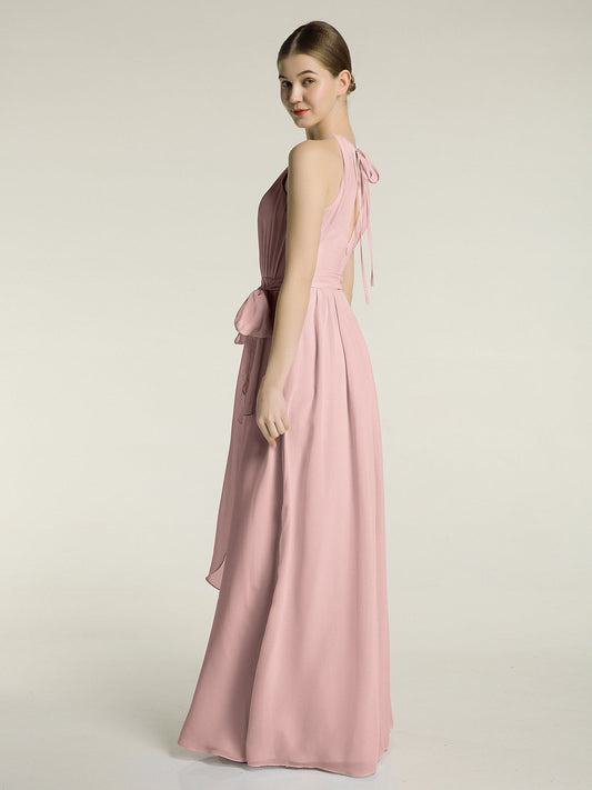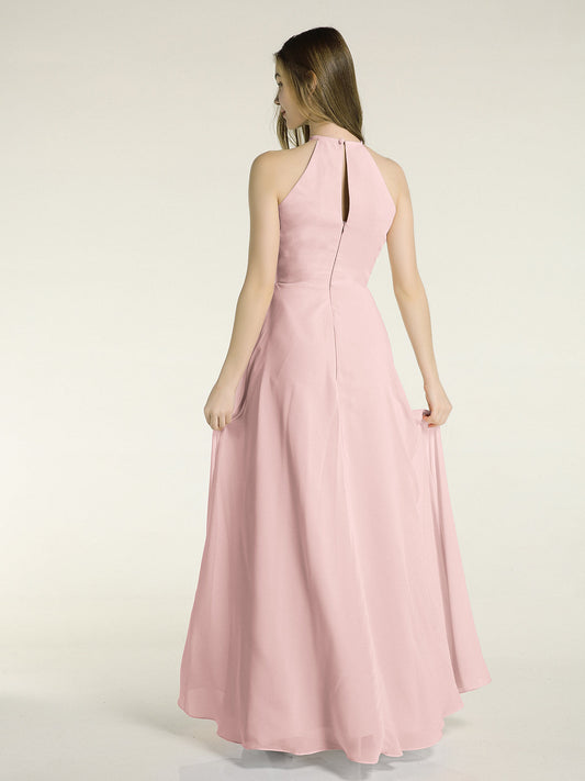 Babaroni MandyVestidos largos de chiffon estilo halter para damas de honor Rosa Polvoriento
