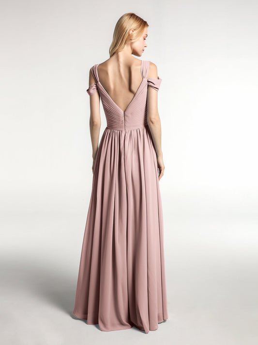 Babaroni HedyVestido largo de chiffon con escote en forma de V y cintura imperio Rosa Polvoriento