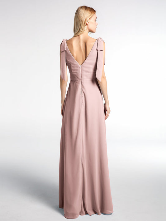 Babaroni CassiopeiaCassiopeia Escote En V Gasa Largo Vestido Con Arco Rosa Polvoriento