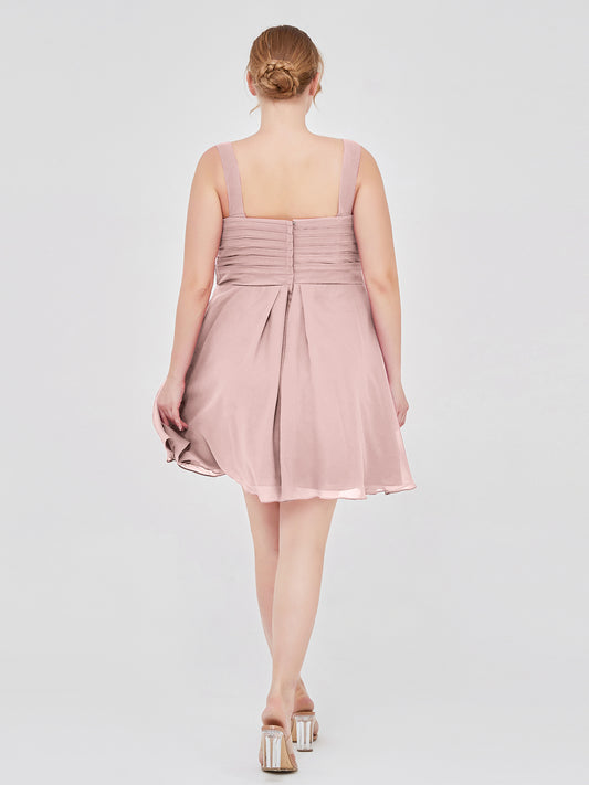 Babaroni PenelopePenelope Escote En V Gasa Corto Vestido De Dama De Honor Rosa Polvoriento