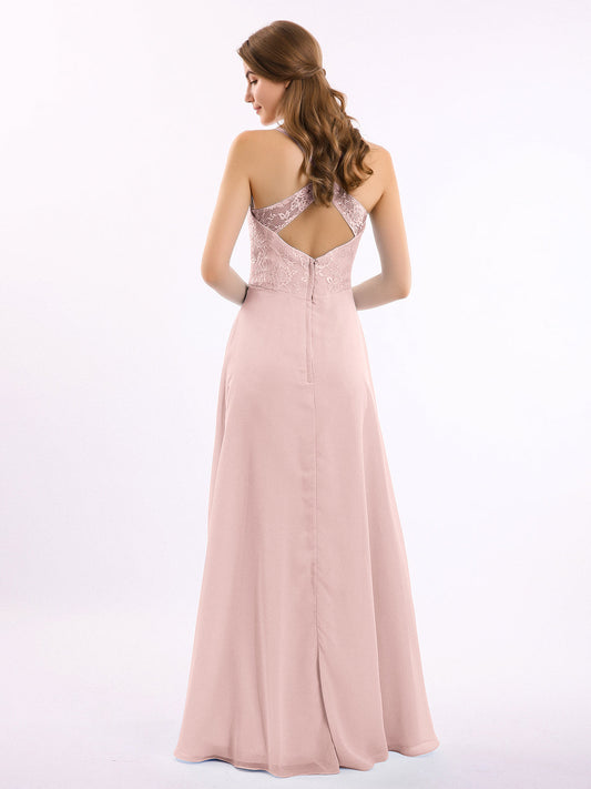 Babaroni AmandaVestidos largos de chiffon y encaje estilo halter Rosa Polvoriento