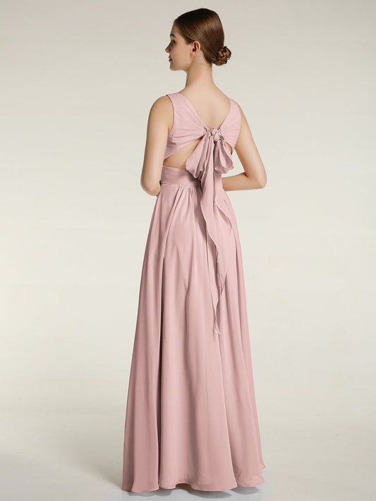 Babaroni JaneVestidos largos de chiffon estilo halter con lazo Rosa Polvoriento
