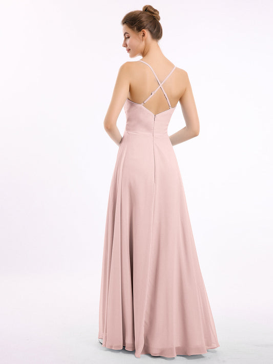 Babaroni VickyVestidos de dama de honor de chiffon con escote en V y tirantes finos Rosa Polvoriento
