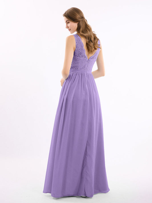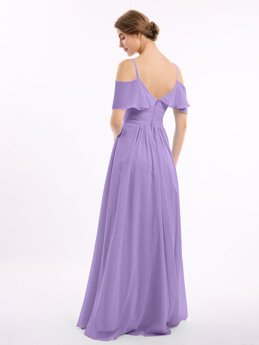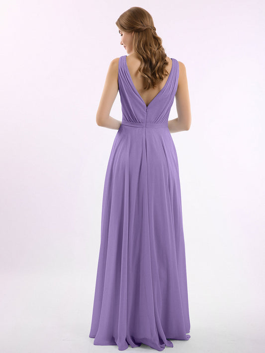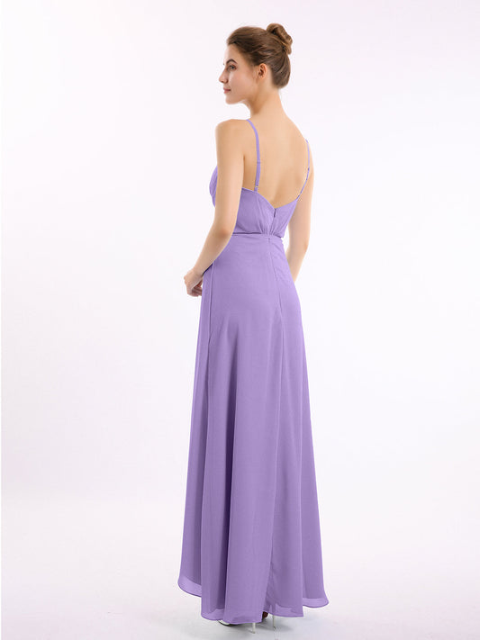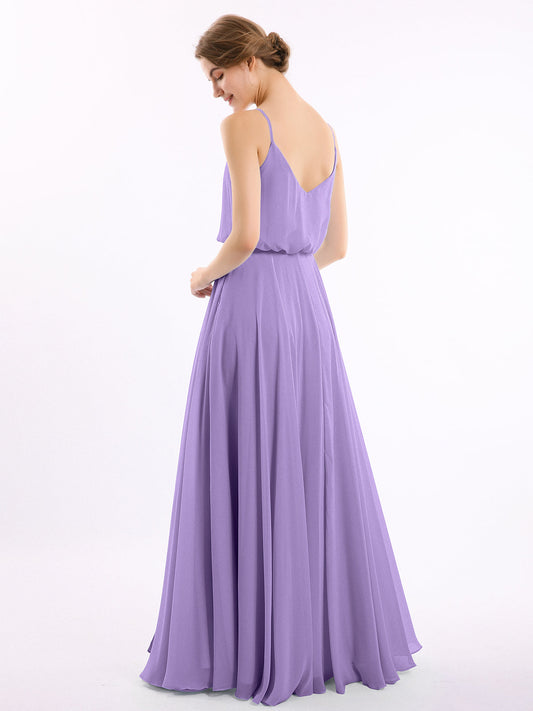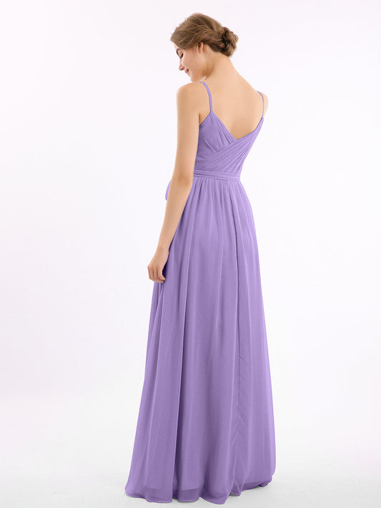 Babaroni VickyVestidos de dama de honor de chiffon con escote en V y tirantes finos Tahití