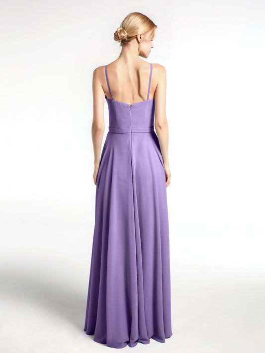 Babaroni EllaVestido sencillo de chiffon con tirantes finos y escote en forma de muesca Tahití