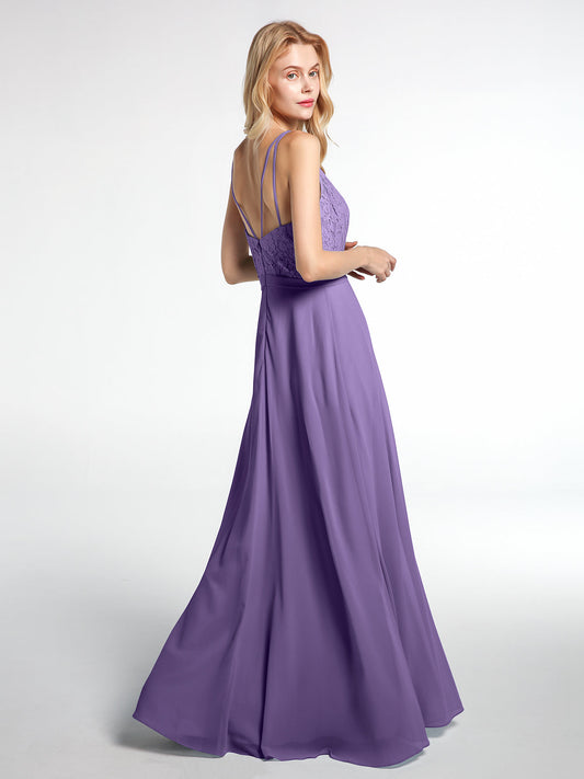 Babaroni LaraineVestido maxi con cuerpo de encaje y falda de chiffon con escote en V Tahití