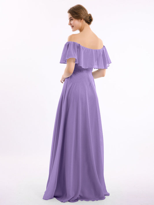 Babaroni HazelVestido largo de chiffon con hombros descubiertos Tahití