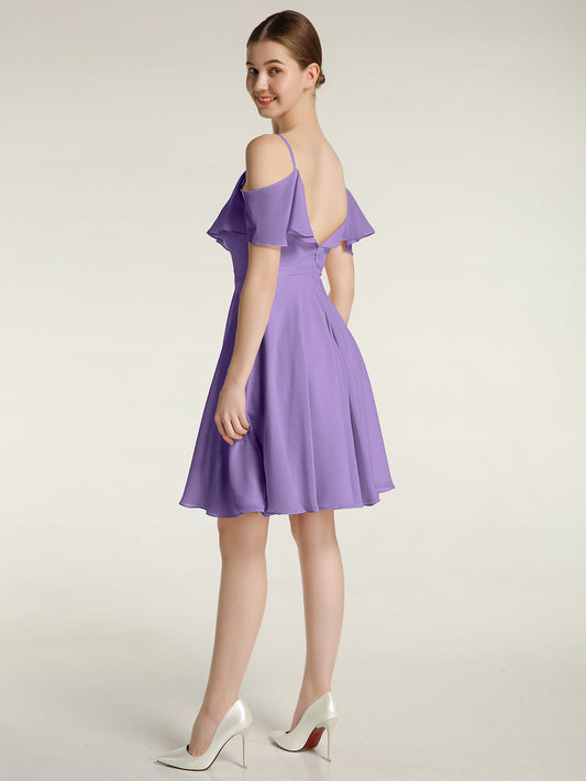 Babaroni SelenaVestidos cortos de chiffon con escote tipo scoop y mangas de volantes Tahití