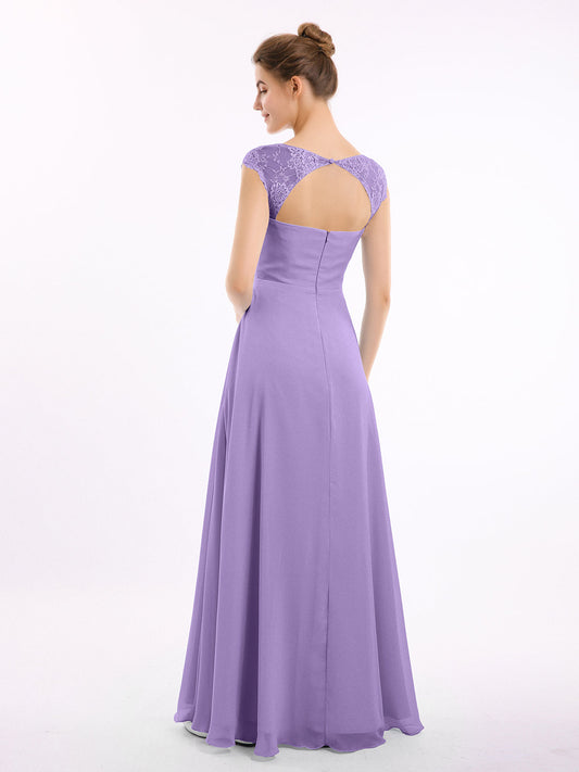 Babaroni MarleyVestidos de dama de honor de chiffon con mangas cap de encaje Tahití