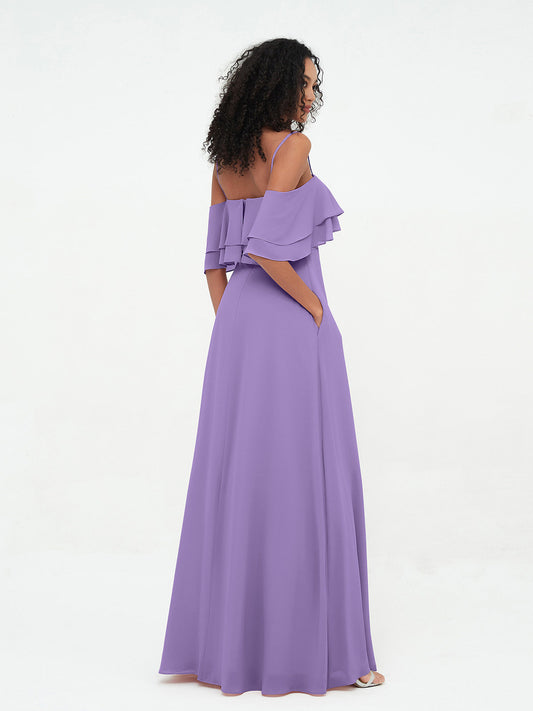 Babaroni JessicaVestidos de dama de honor de chiffon con tirantes finos Tahití