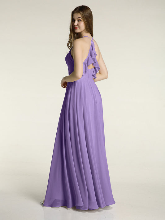 Babaroni AmyVestidos largos de dama de honor de chiffon con tirantes de cuello halter Tahití