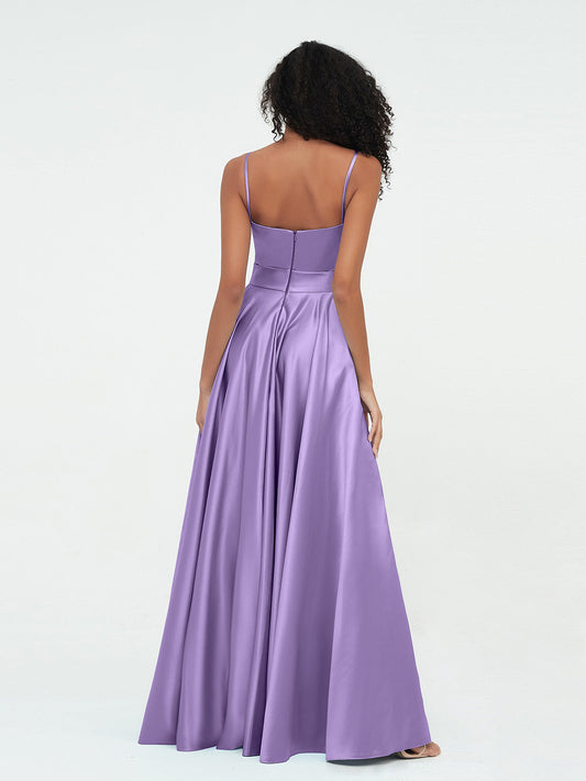 Babaroni MyrnaVestidos máximos de satén estilo A-line con tirantes spaghetti Tahití