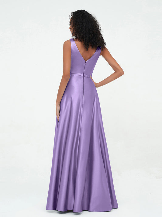 Babaroni SadeVestidos máximos de satén estilo princesa con escote en V y bolsillos Tahití