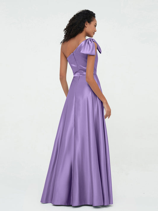 Babaroni PrimroseVestidos largos de satén de un hombro con bolsillos Tahití