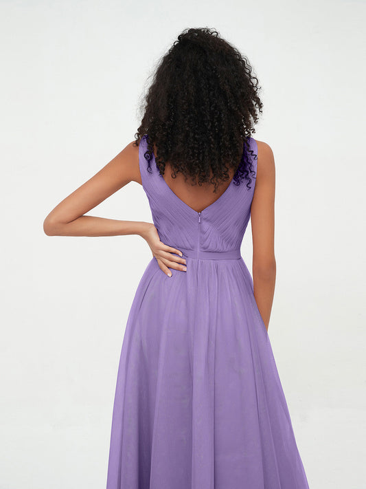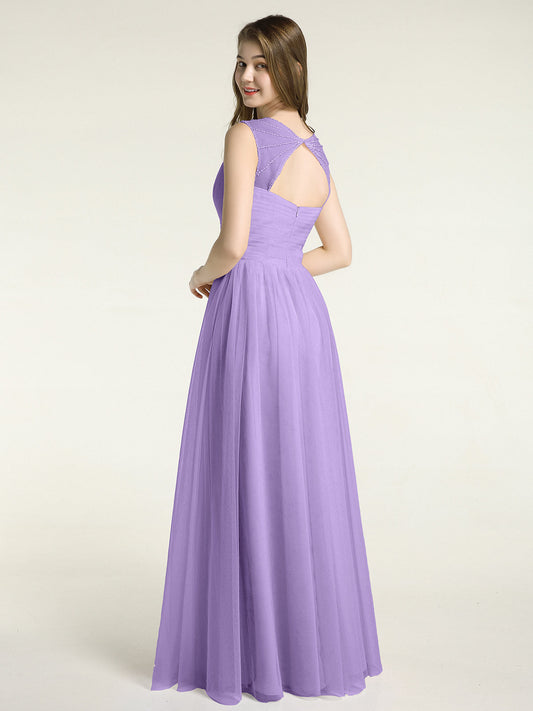 Babaroni TessVestidos de dama de honor de tul cruzado con escote ilusión Tahití