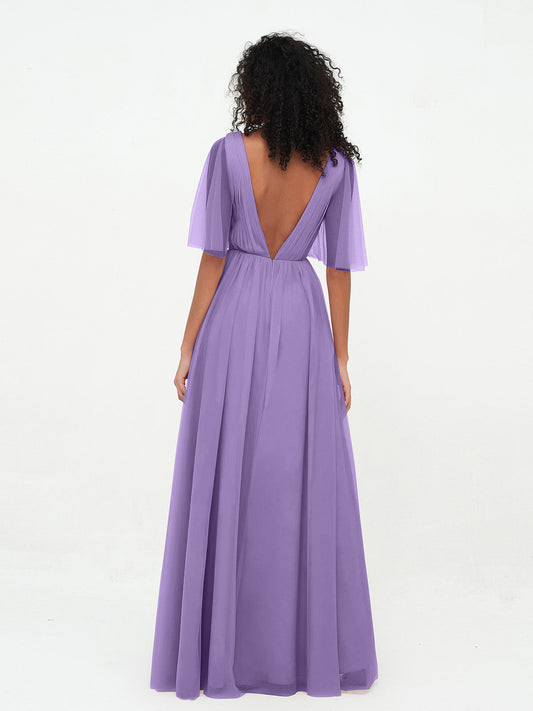 Babaroni KatherineVestidos máximos de tul estilo A-line con escote en V profundo en la espalda Tahití