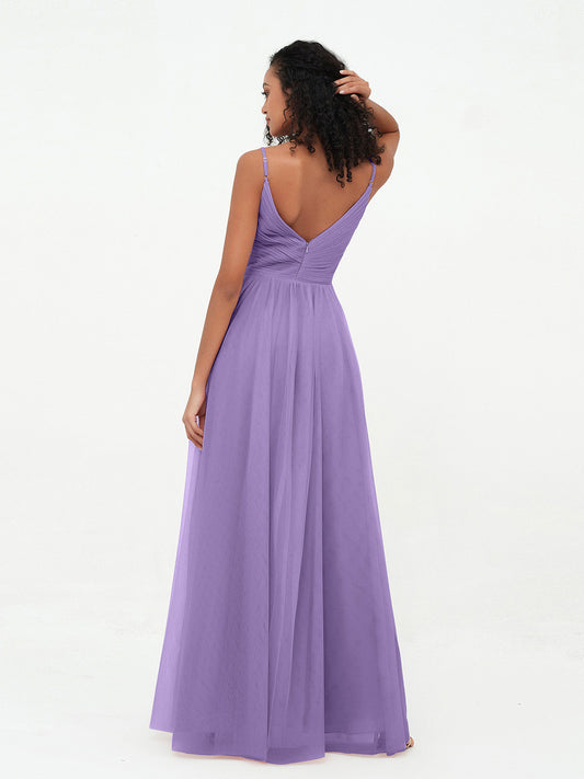 Babaroni MarjorieVestidos largos de tul plisado con tirantes spaghetti Tahití