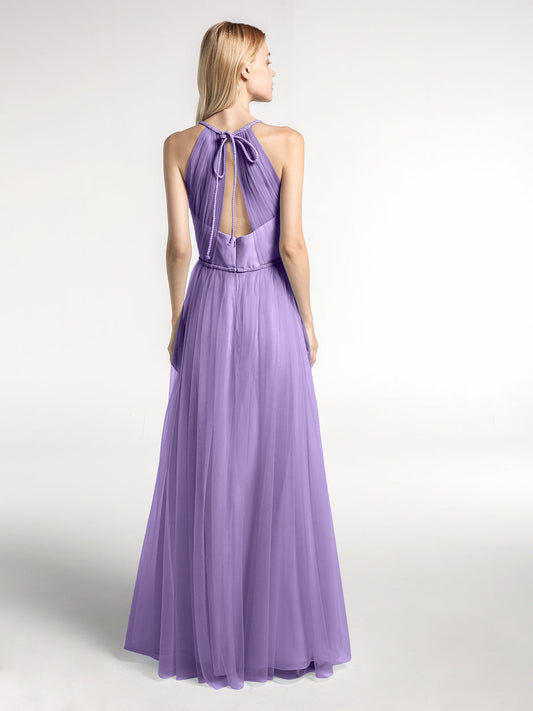 Babaroni GeraldineVestidos boho máximos de tul con escote halter ilusión Tahití