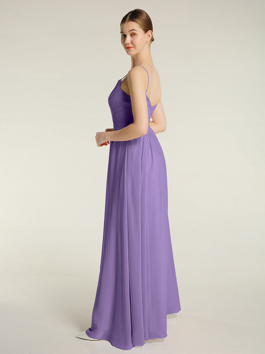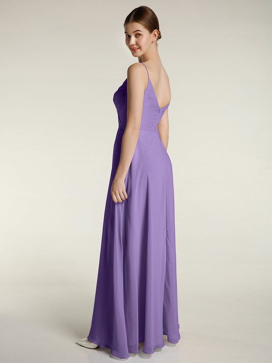 Babaroni CoraVestido largo de dama de honor de chiffon con tirantes dobles Tahití
