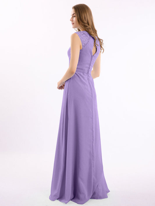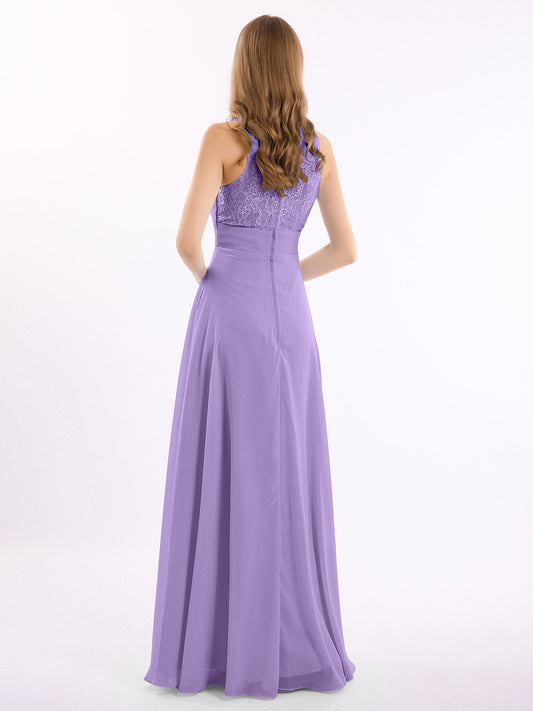 Vestidos largos de chiffon con encaje en escote en V profundo y espalda descubierta Tahití
