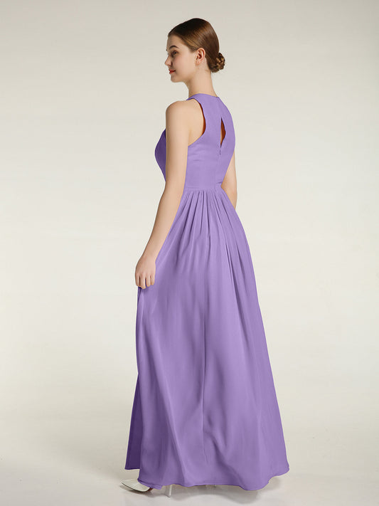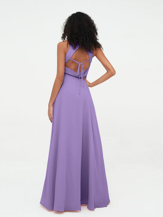 Vestido sencillo de chiffon estilo halter con abertura Tahití