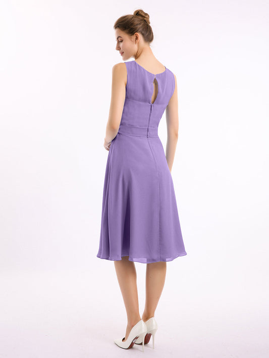 Vestido corto de chiffon con cuello tipo scoop y lazo de cinturón Tahití