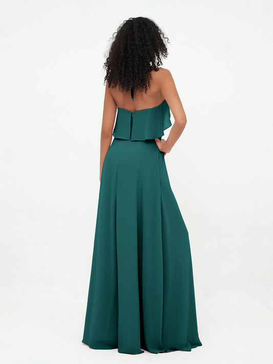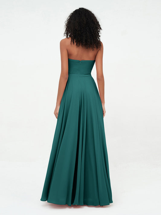 Babaroni YvonneVestidos largos de chiffon sin tirantes y escote corazón Pavo real