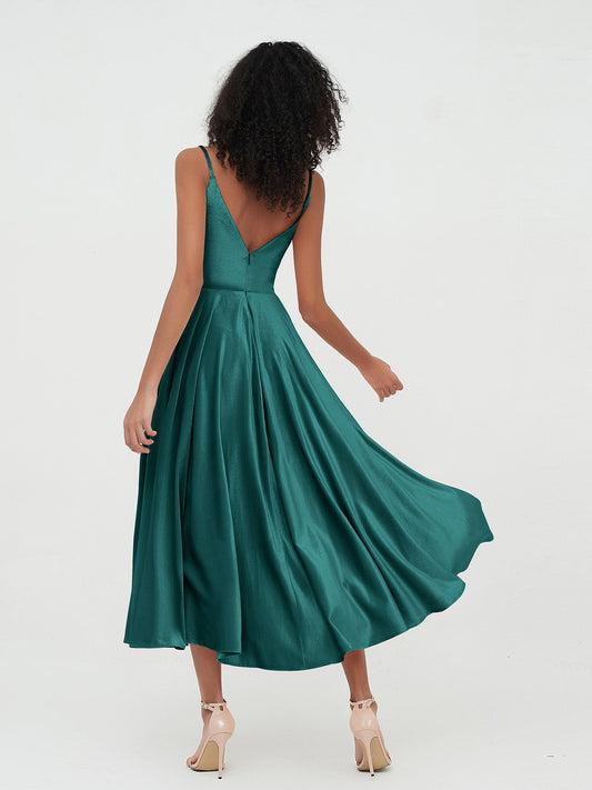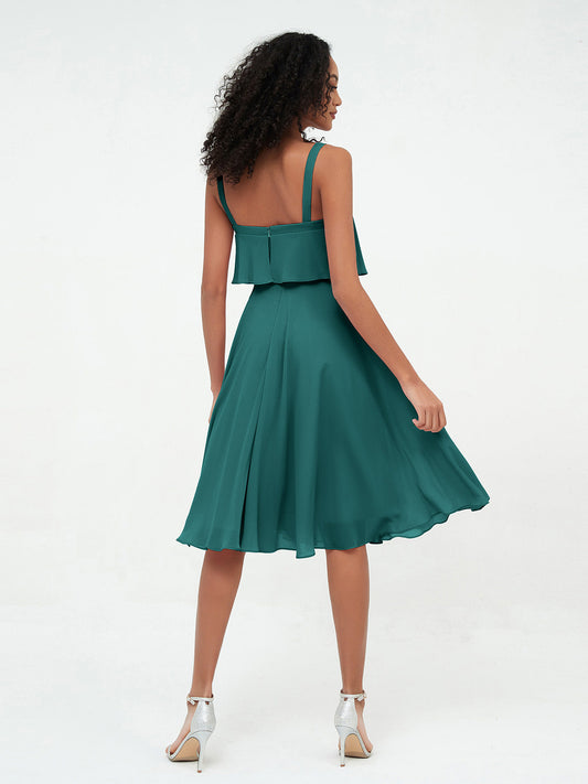 Babaroni AnnaVestidos cortos de chiffon con tirantes para la dama de honor con falda redonda Pavo real