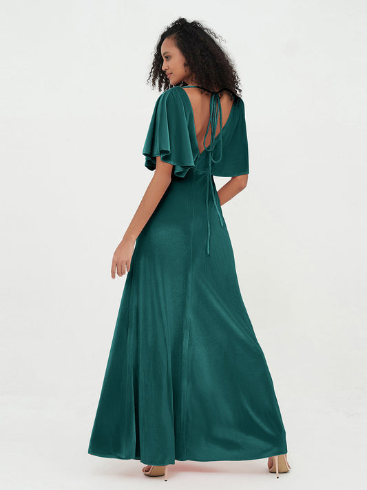Babaroni CarolineVestidos máximos de terciopelo con cuello en V y estilo sirena Pavo real
