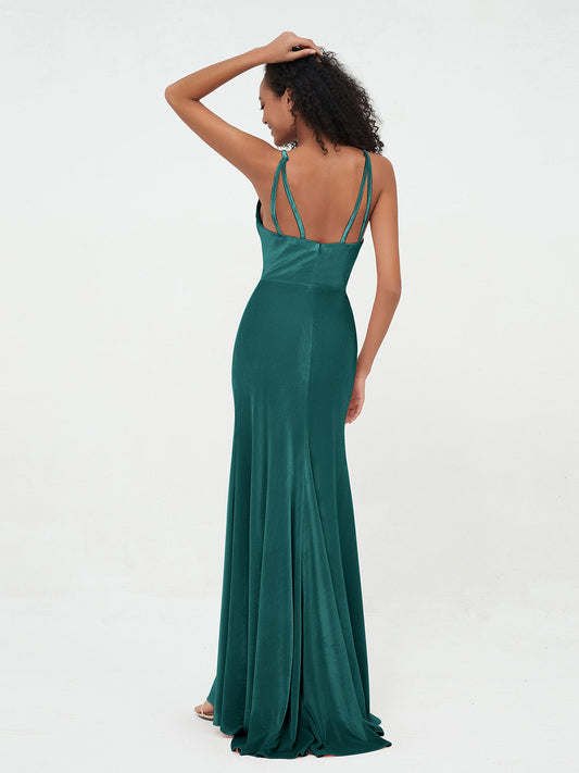 Babaroni CharlotteVestidos máximos de terciopelo estilo sirena con escote en V Pavo real